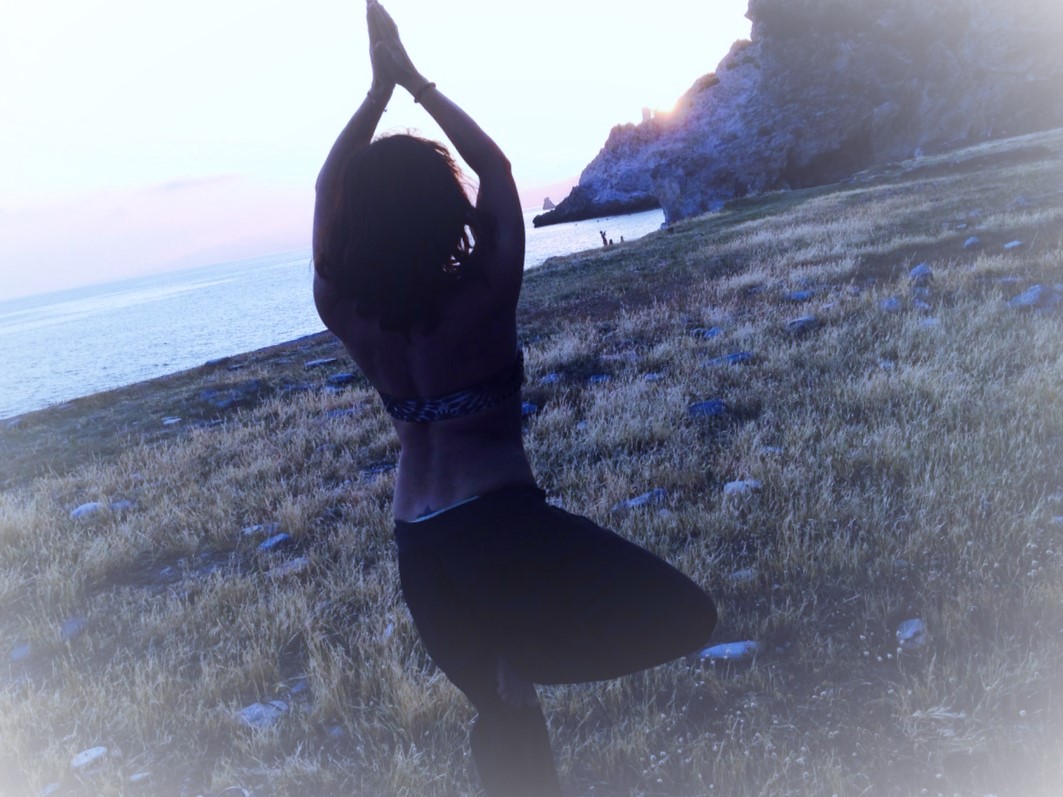 Miradla haciendo el saludo al sol